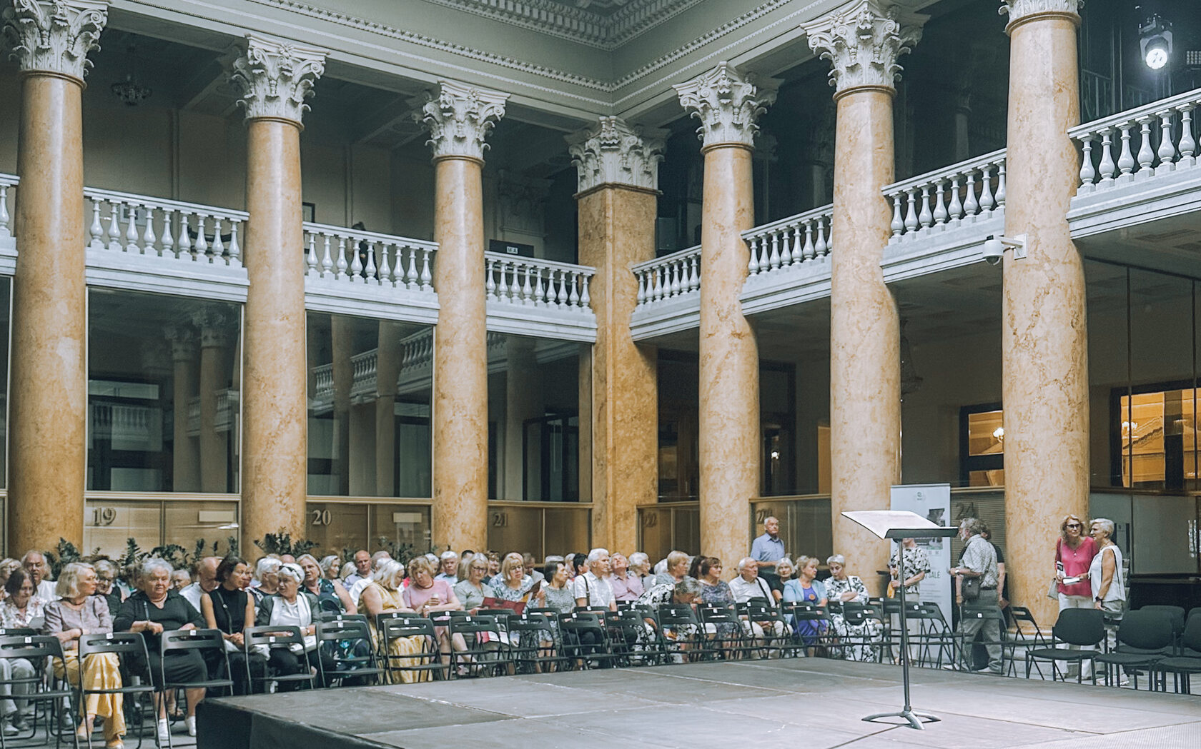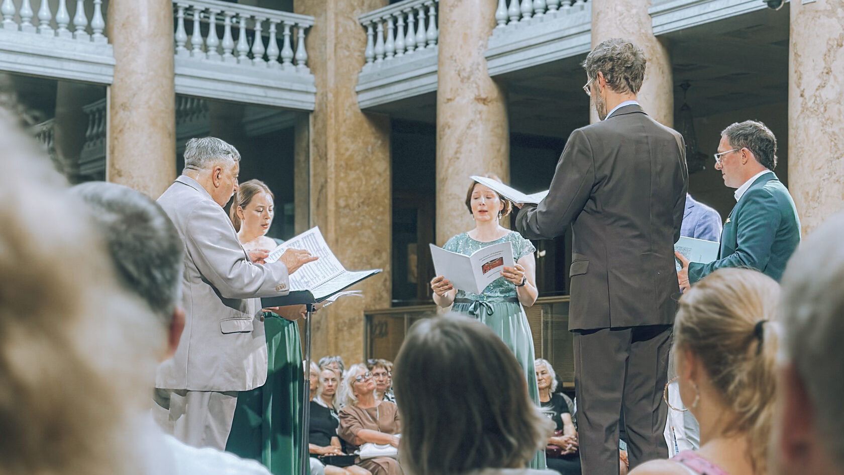 Godīgi sakot, tikai apraksta sākumā, domājot par Kauņas kultūrslāņiem, aizdomājos par koncerta īpašo vērtību arī no cita skatupunkta – senā mūzika skanēja vienā no Kauņas modernisma arhitektūras ēkām, Lietuvas bankā, un tas bija tikpat saskanīgi kā Kauņas arhitektoniskais ansamblis, kurā starp barokāliem artefaktiem izceļas 20. gadsimta starpkaru modernisma pērles. Šoreiz šķiet, ka pilnīgi vietā ļauties pat šķietami triviālai vilkmei saskatīt paralēles ar koncertprogrammas īpašo salikumu – no brīžiem eksotiski orientālajiem skaņdarbiem un 14. gadsimta daudzbalsības paraugiem līdz 19./20. gadsimta komponista Makša Rēgera polifonijai. Koncertā dziedātāju skaits mainījās no 4 līdz 8, un arī tembrālie salikumi katrā skaņdarbā bija gandrīz unikāli..